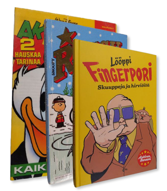 Myös sarjakuvia antikvariaatistamme löytyy tuhansia. Painopisteenä meillä on erityisesti hyväkuntoiset sarjakuva-albumit, mutta myös Aku Ankan taskukirjat, manga ja lännensarjat ovat hyvin edustettuina.