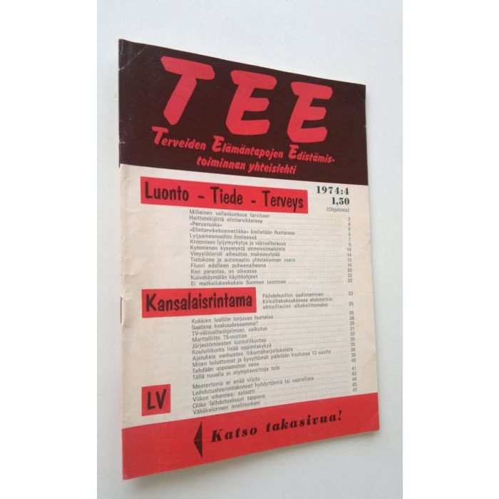 Tee : terveiden elämäntapojen edistämistoiminnan yhteislehti 1974:4 (nro 4, 1974)