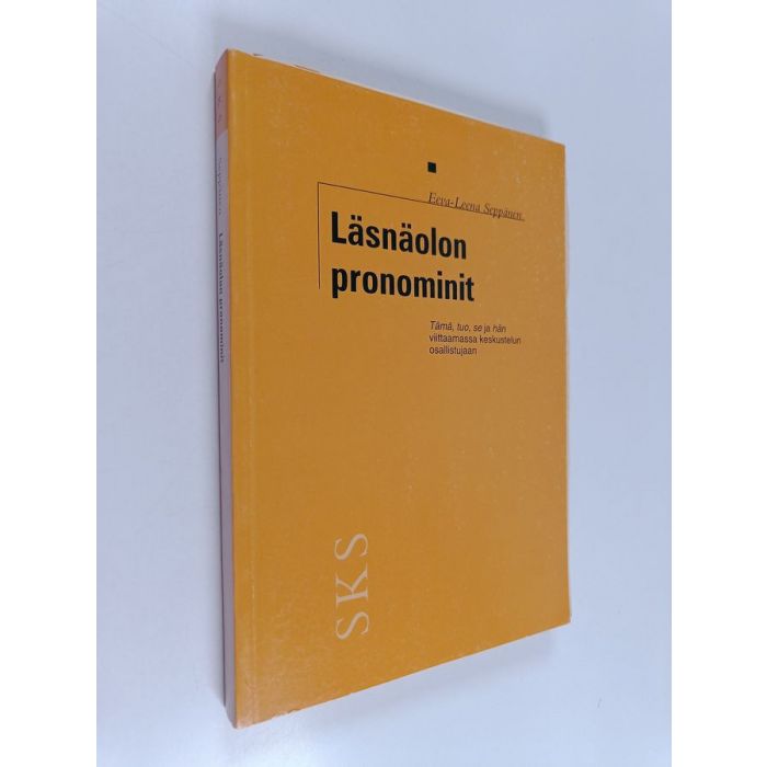 Eeva-Leena Seppäsen teos pureutuu suomen kielen demonstratiivi- ja persoonapronominien (tämä, tuo, se, hän) käyttöön keskustelutilanteissa ja niiden rooliin osallistujien viittaamisessa sekä vuorovaikutuksen jäsentämisessä.